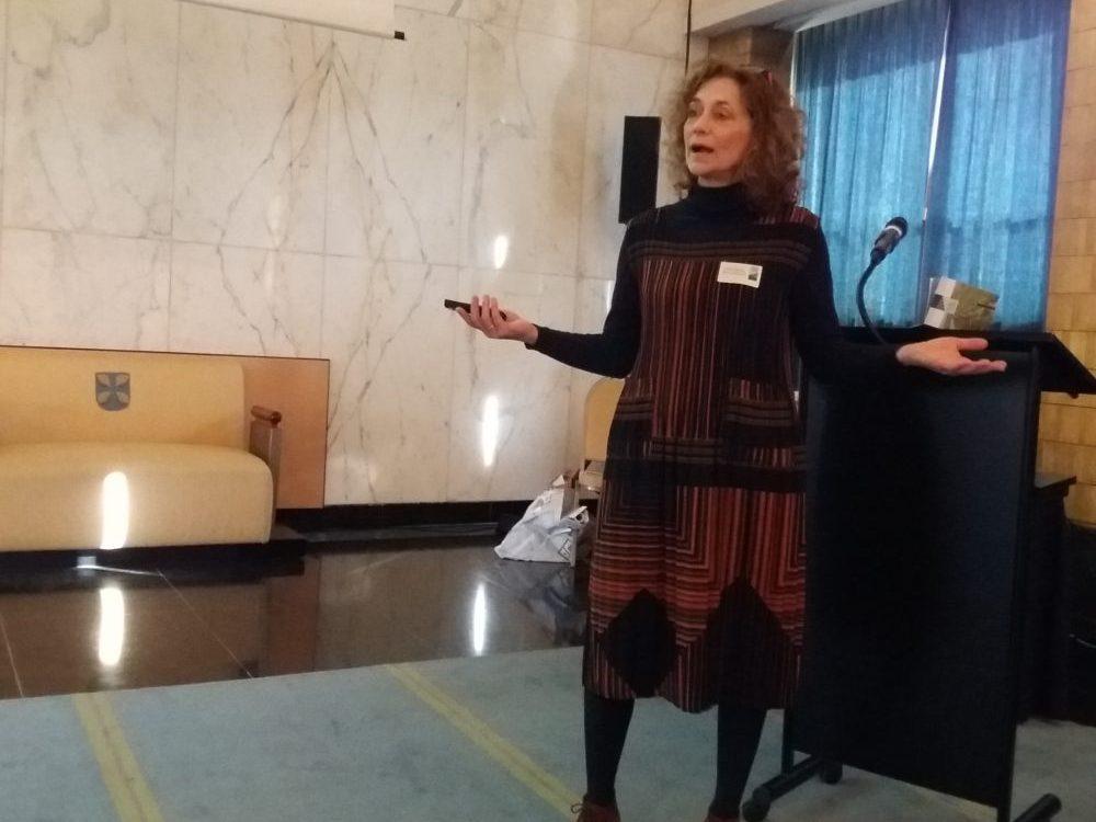 Michaëla Hanssen, programmamanager Faro, gaf een korte introductie in het nieuwe programma van de RCE rond Faro. Erfgoed brengt mensen samen en zorgt ervoor dat de omgeving, die snel verandert, vertrouwd blijft. Het Europese Verdrag van Faro benadrukt deze maatschappelijke en verbindende waarde van erfgoed en het belang van deelname door de samenleving. Het belangrijkste vraagstuk van het programma is: hoe kunnen we het Verdrag van Faro vertalen naar de Nederlandse praktijk? Michaëla: “Faro gaat over iedereen. Erfgoed gaat over iedereen. Faro dwingt ons om af en toe een stapje achteruit te doen. Niet meteen naar het wat en hoe, maar even stil blijven staan bij het waarom en voor wie we het doen.”