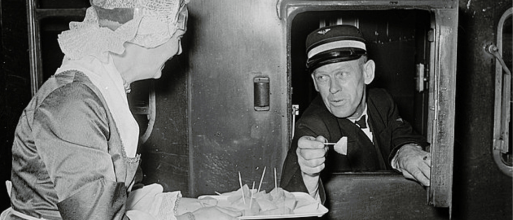 (Beeldverantwoording: ‘Servering beschuit met kaas door dames in Kaasexpress Amsterdam-Alkmaar, 1953. Bestandnr: 905-8333. Wikimedia Commons.)